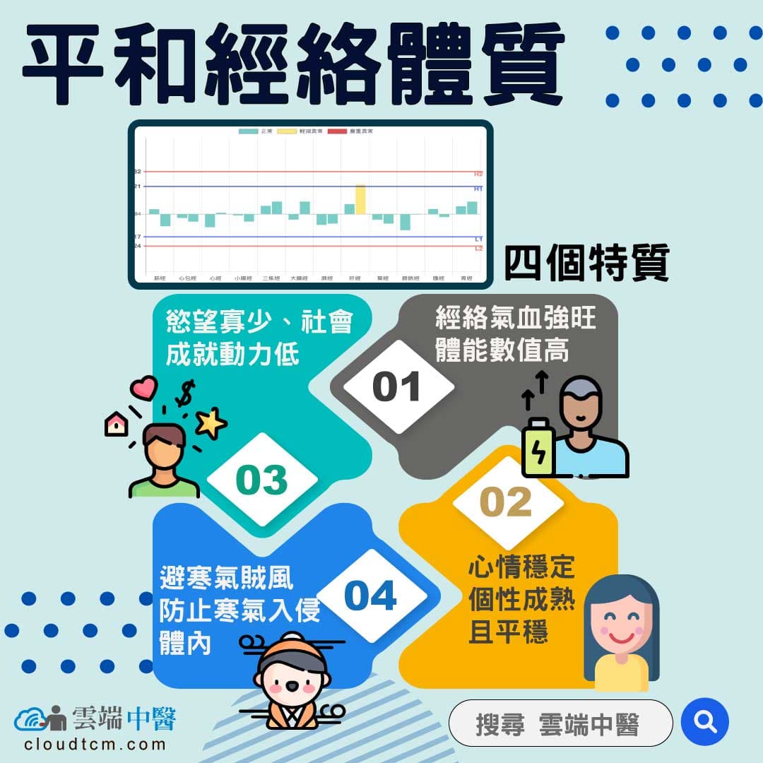 當然,一定會有社會高成就人士(董事長、CEO...等等),卻也是平和體質的人,由於這種少數人很難聯繫到,請各位讀者有遇到時,一定要回饋給我們:support@cloudtcm.com