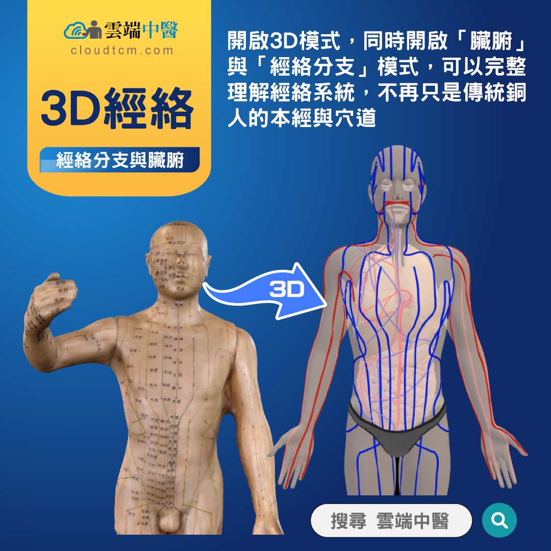 有更多的疾病,都可以透過經絡型態結合3D分支來理解,這些內容未來雲端中醫會分享更多,各位讀者也可以自行觀察及驗證。