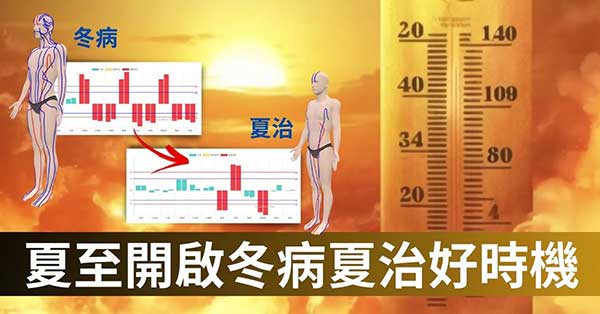 傳統中醫界總是認為,如果能運用「冬病夏治」的道理治病,不只可減緩冬天病症,對來年春天也極有幫助,而時間點就是「夏至」之前後兩周內,是改善寒性體質的最佳時刻,只要運作的好,可以大幅增強免疫系統。