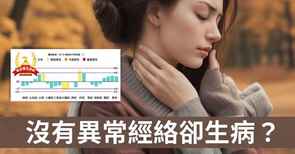 然而,由於他們的器官在過去已經發生過病變,而且開過刀,因此就算經絡呈現沒有異常經絡現象,依然可能會出現特定部位的、疼痛或症狀。