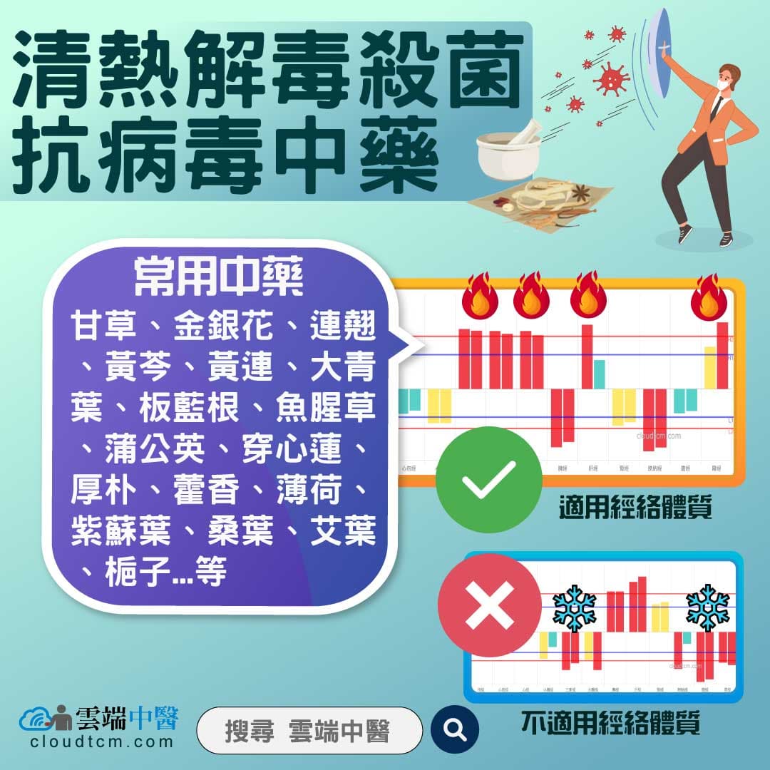 這類中藥不但可以清除體內的熱氣,絕大多數在現代藥理學的研究下,都發現具有殺菌、抗病毒功效。若將這類型中藥組合起來運用,也難怪許多人服用清冠一號之後都大乎有效!