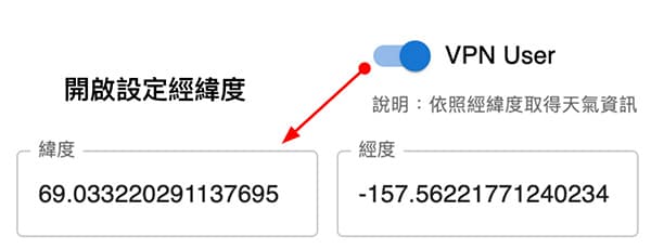 無法切換VPN的人,可以在使用者資訊頁面設定「經緯度」,這樣就不會偵測IP。