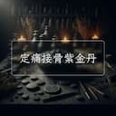 定痛接骨紫金丹, 出處:《醫學綱目》卷二十。 組成:麝香1錢半,沒藥1錢半,紅娘子1錢半,烏藥2錢半,地龍(去土)2錢半,川烏1兩,草烏(炮)1兩,五靈脂(去皮)半兩,木鱉子(去殼)半兩,茴香2錢半,黑牽牛(生用)5分,骨碎補5錢,威靈仙5錢,金毛狗脊5錢,防風(去蘆)5錢,自然銅(醋淬7次)5錢,禹餘糧4錢(碎),陳皮2錢半,青皮2錢半。 主治:跌撲傷損。